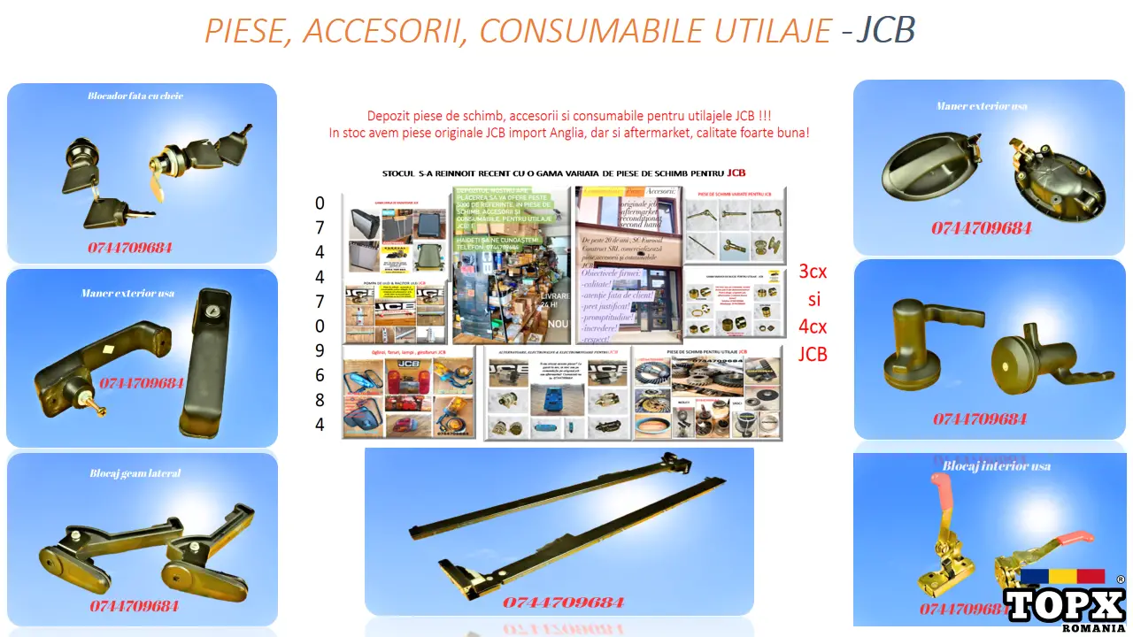 In magazinul și depozitul nostru avem piese originale jcb sau aftermarket pentru utilajele jcb, iar pe comandă aducem și pentru alte utilaje!