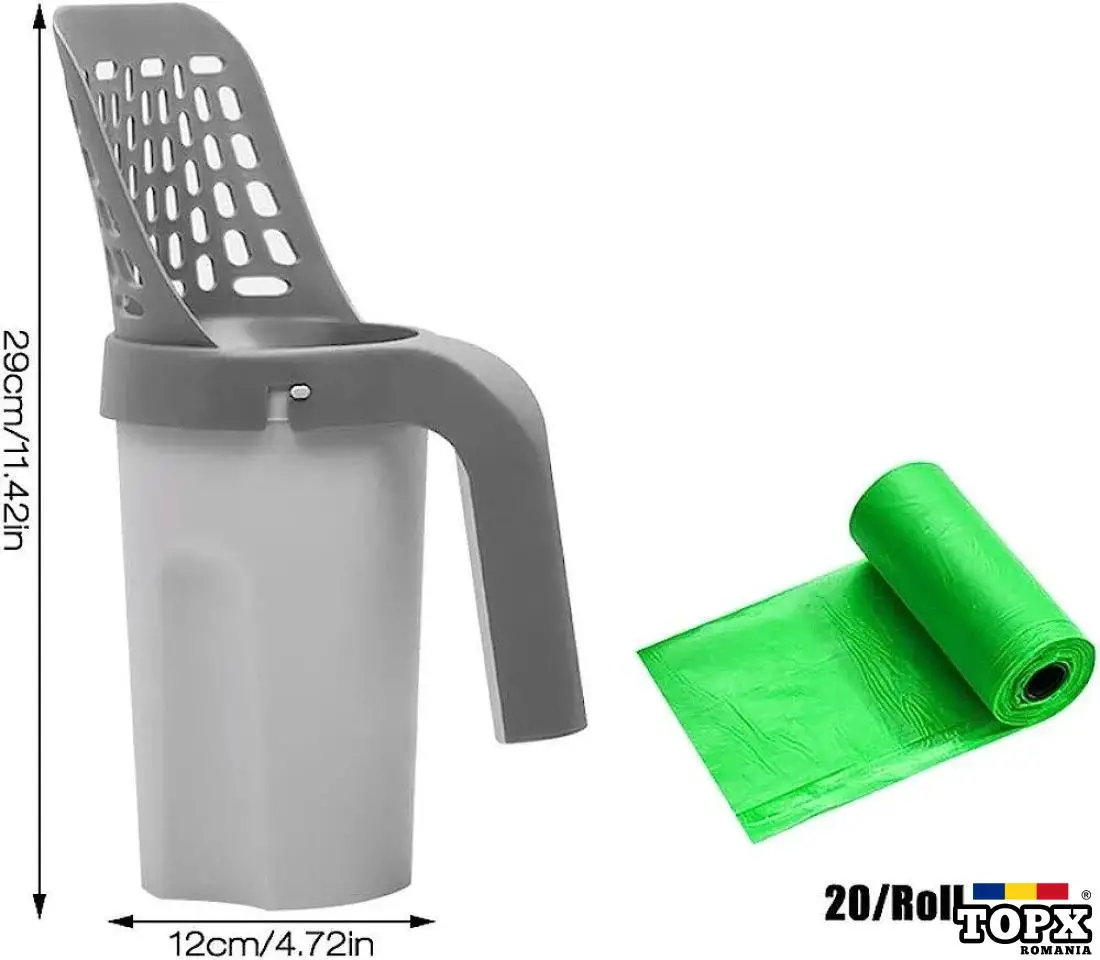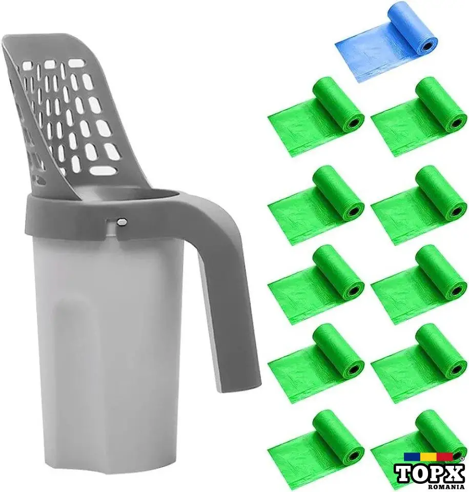 Această lopată pentru așternut este fabricată din material PP de înaltă calitate, este robustă, sănătoasă. Simplu și frumos: aspect de înaltă calitate, formă integrată, simț tridimensional elegant. Design special: coșul de gunoi atașat și designul inteligent al trapei facilitează curățarea cutiei de gunoi.
