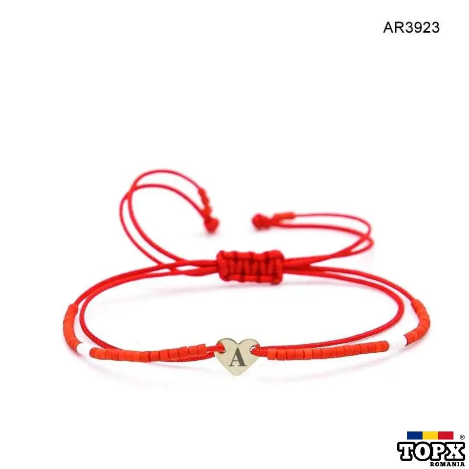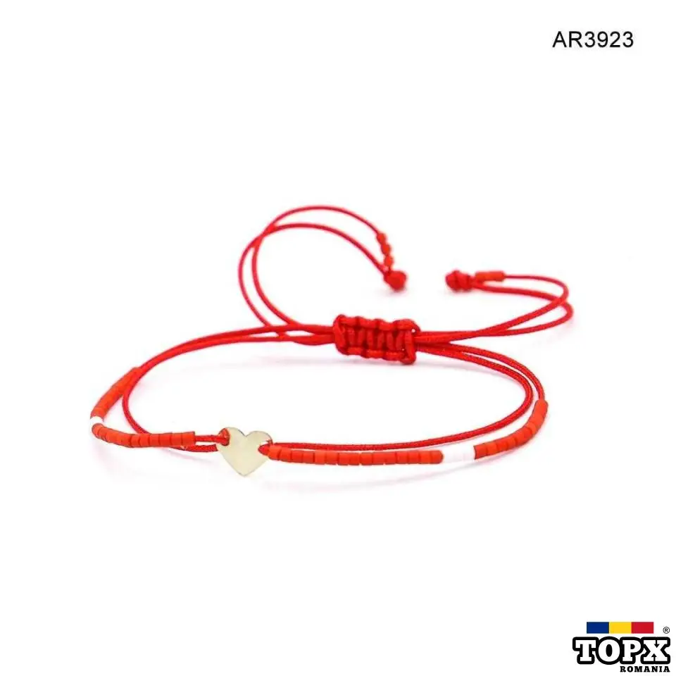 Bratara aur 14K cu snur, AR3923, cu inimioara si cristale Miyuki de 2 mm