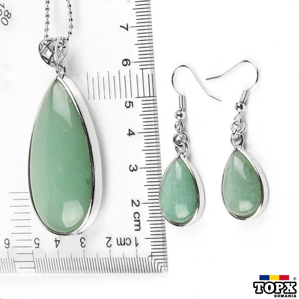 Dimensiuni Cercei si pandantiv aventurin: lungime piatra de aventurin 46 mm, latime 28 mm, lantisor de 50 cm