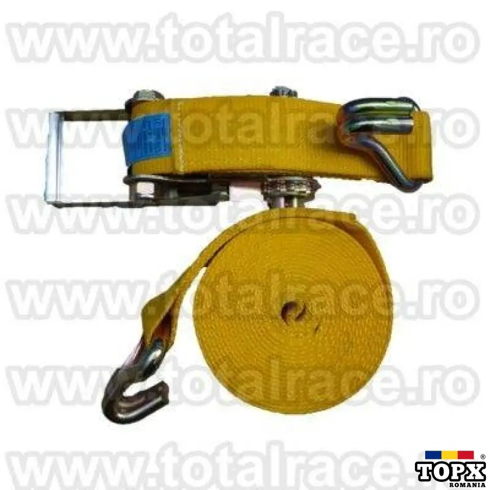 Total Race Romania comercializeaza cu livrare din stoc chingi de ancorare marfa 10 tone latime 75 mm , profesionale din poliester, chingi de ancorat marfa pe camioane, sufe agabaritice, chingi de arimare, chinga textila cu clichet , chinga de ancorare paleti, chinga de ancorat marfa din doua parti, chingi productie Olanda 10000 daN peste incarcatura, dispozitive de ancorat marfa , accesorii pentru ancorat, protectii chingi de ancorat, protectii chingi de ancorare din PVC, echipamente de ancorare, dispozitive de ancorare din chingi textile din poliester 10 tone, chingi textile de ancorare cu clichet si carlige pentru transport agabaritic, chingi de ancorare circulare, chingi de ancorare cu latime de banda 75 mm.Chingile textile de ancorare 10 tone sunt insotite de Declaratie de Conformitate.