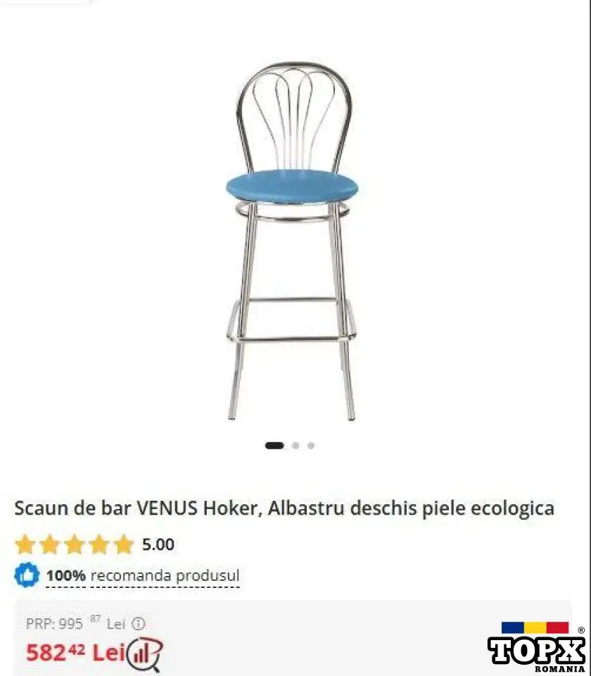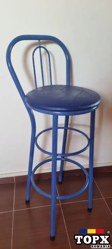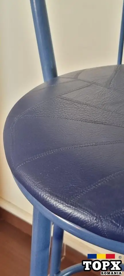 Acest scaun modern este ideal atât pentru baruri, cât și pentru zona de make-up sau coafor. Cu un design minimalist și practic, oferă confort datorită șezutului tapițat cu piele ecologică albastră, ușor de întreținut și rezistentă în timp. Structura metalică solidă asigură stabilitate, iar suportul pentru picioare adaugă un plus de comoditate.