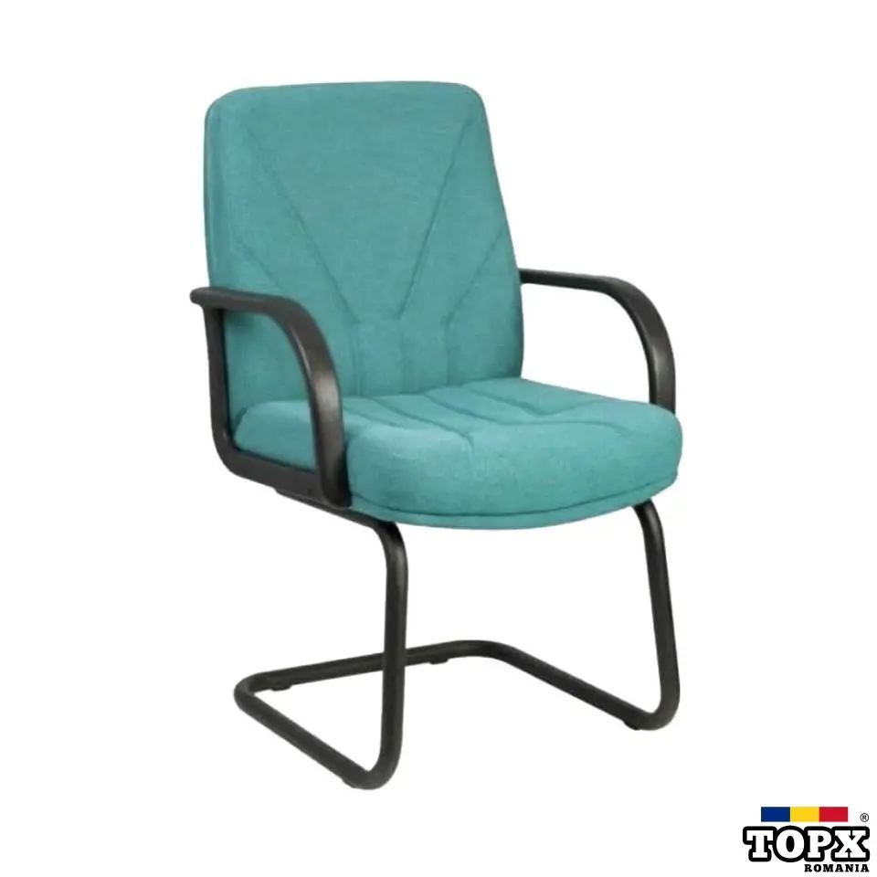 Scaun conferință, vizitator cu șezut și spătar tapițat cu material textil, talpă sanie vopsite negru, brațe PP.