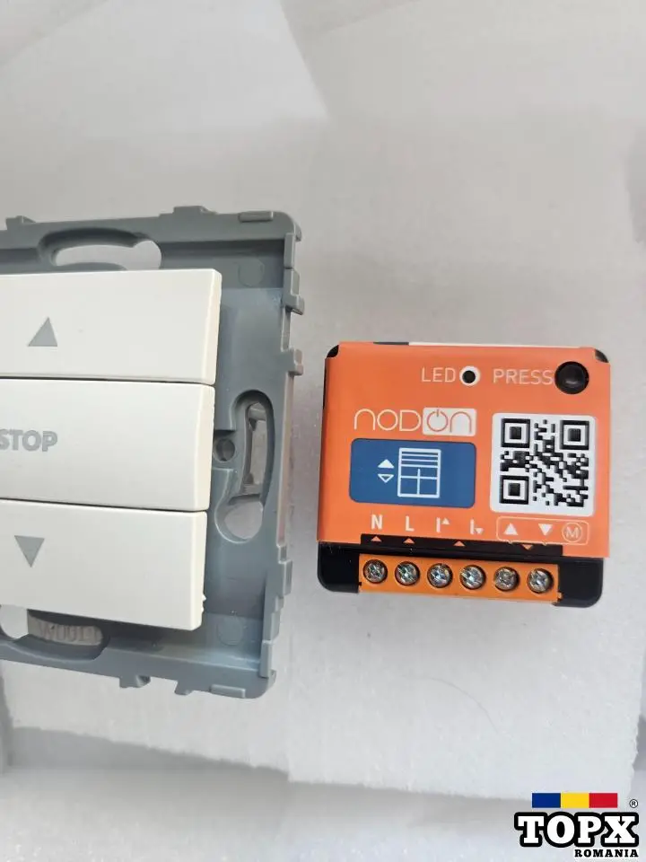 Cu Modulul pentru Obloane, compatibil cu protocolul global EnOcean® pentru Case și Clădiri Inteligente, transformați obloanele în dispozitive inteligente. Nu mai este nevoie să utilizați neapărat întrerupătorul de perete de lângă oblon: Modulul pentru Obloane vă oferă o adevărată oportunitate, fără lucrări de construcție și fără cabluri, de a controla obloanele de oriunde din casă. Pentru mai mult confort, lansați scenarii de trezire sau de noapte și închideți/deschideți automat obloanele.