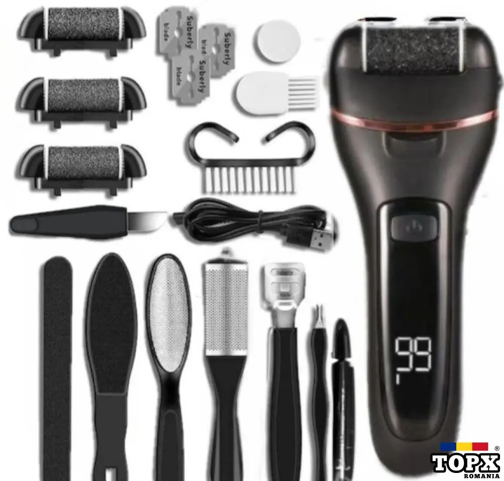 Set pila electrica pentru talpi si calcaie, display, acumulator, incarcare usb.