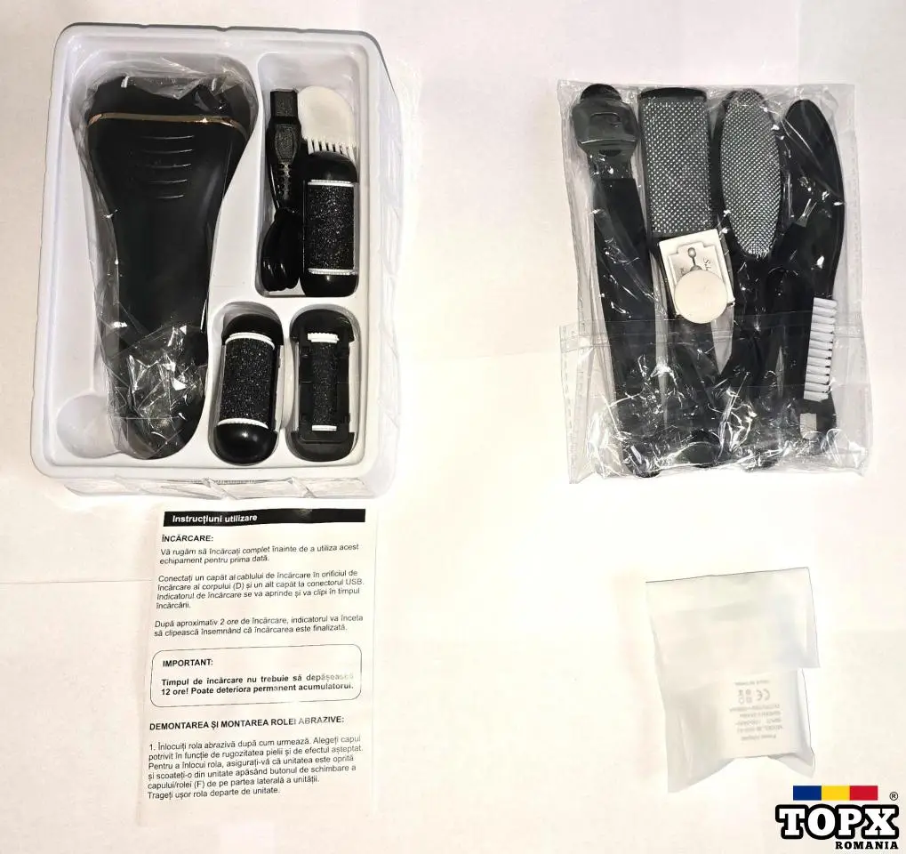 Set portabil de ingrijire a picioarelor indeparteaza eficient pielea dura contribuind la inlaturarea stratelor ingrosate si la restabilirea aspectului sanatos al pielii.