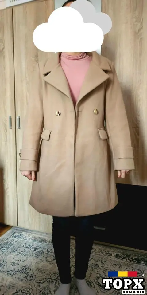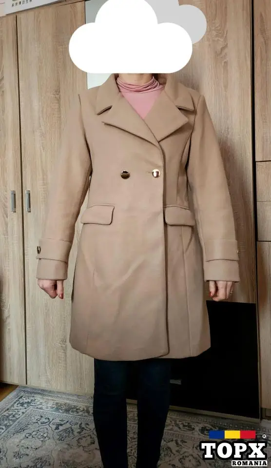Un palton elegant pentru femei de culoare crem, potrivit pentru sezonul de toamna / iarnă. O piesă vestimentară ideală pentru a-ți completa ținuta cu stil și rafinament.