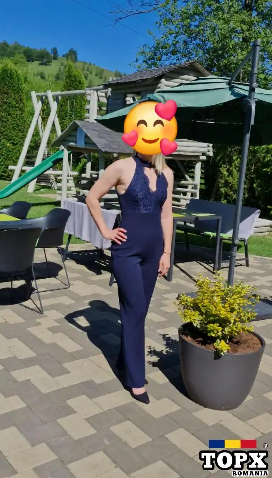 Salopeta eleganta bleumarin, cu dantela, marimea S, din material foarte bun si rezistent, foarte comoda, se aseaza foarte bine pe corp, fara sa deranjeze la purtat.