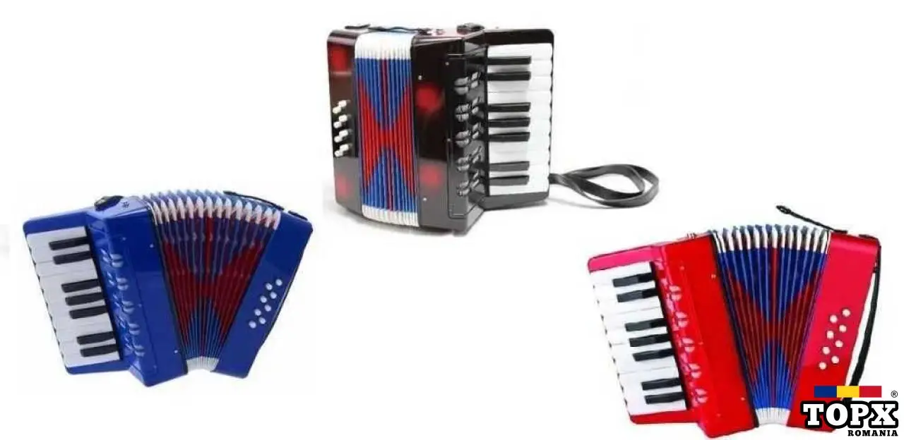 Cu acest acordeon copii sunt purtati pe taramul notelor muzicale, se vor distra de minune, vor fi mai veseli si isi vor dezvolta de mici abilitatile artistice.