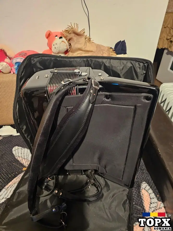 Acordeon Rousl Standard, 80 bași, 3 tonuri, în stare foarte bună de funcționare, recent curățat. Vine însoțit de cutia de transport și depozitare, într-o stare nu foarte bună.
