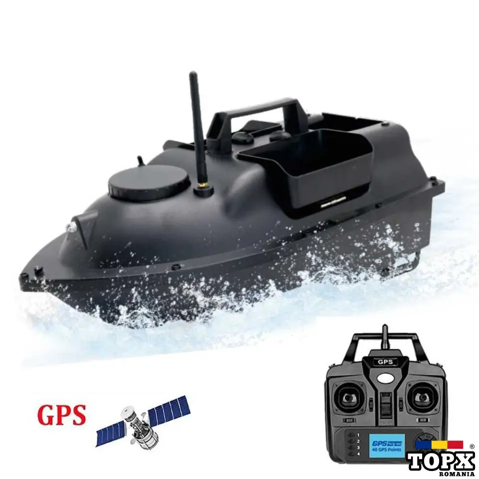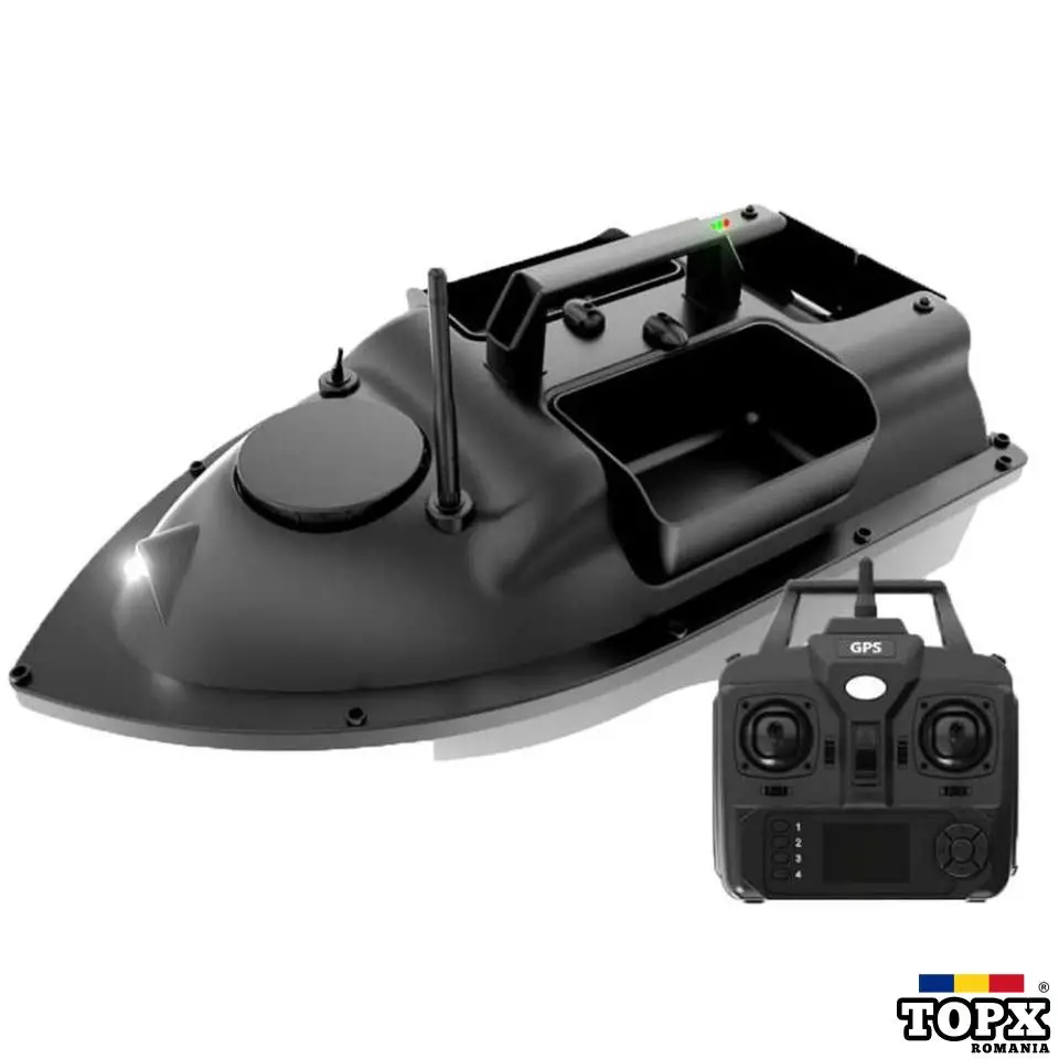 Barca cu momeli este alimentată de o baterie re-încărcabilă de 12000 mAh inclusă.