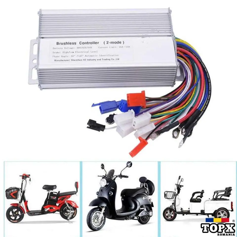 Nume: Controler inteligent fără perii model Premium Voltaj de lucru 36V-84V pana la 4000w Viteza pana la 80-90 km in functie de motorul disponibil Tensiune nominală: 36V-84V Tensiune joasă: 32 V Putere nominala: 3000W-4000W Curent limită: 60A Număr tuburi de control fără perii: 18 Greutate: 1000 g