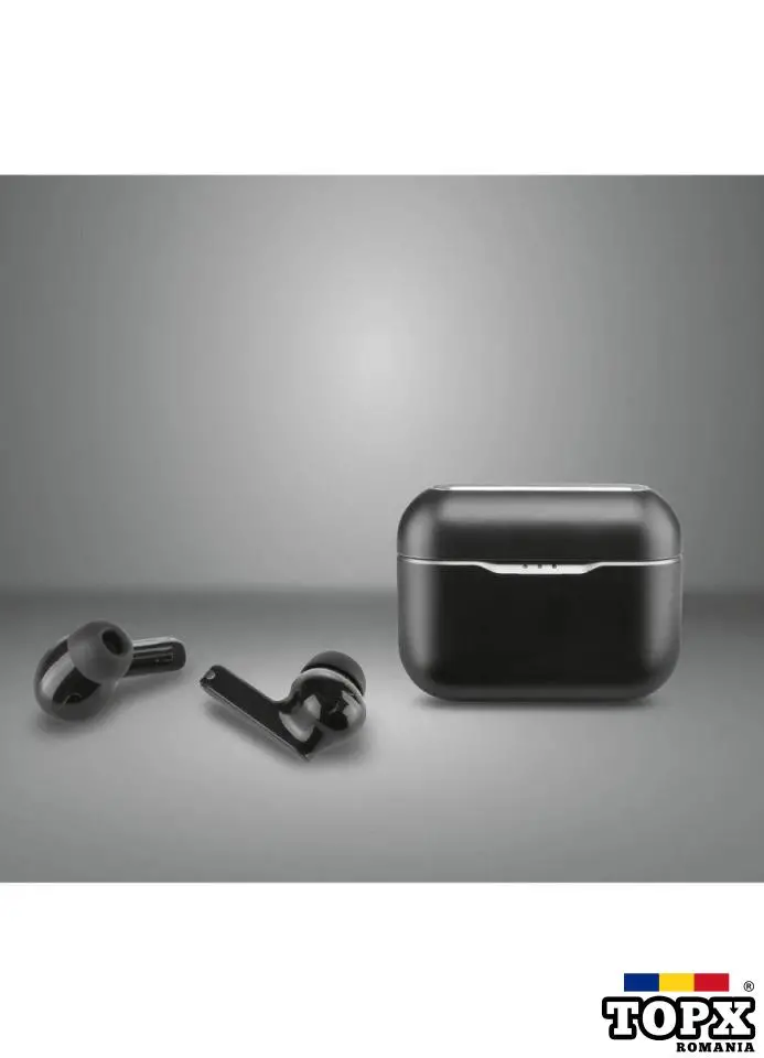 • Cutie de încărcare wireless cu baterie Li-ion integrată (350 mAh) - încarcă căștile în timpul transportului