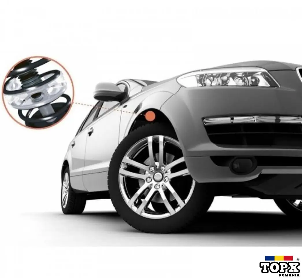 Absoarbe socurile trimise de la roata spre caroserie, stabilizeaza masina in curbe, ridica garda la sol cu 1,5 cm